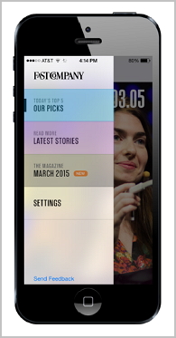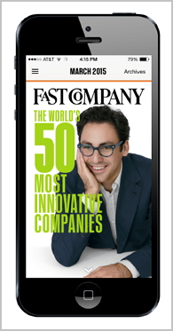 Die App „Fast Company“ zeigt das Potenzial von Adobe Publish auf. Jeder und jede kann sie gratis bei iTunes herunterladen und auf dem iPhone oder iPad nutzen.