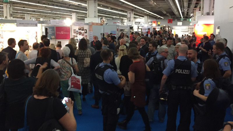 Polizeipräsenz am Stand von Loci/Antaios. (Foto: buchreport)