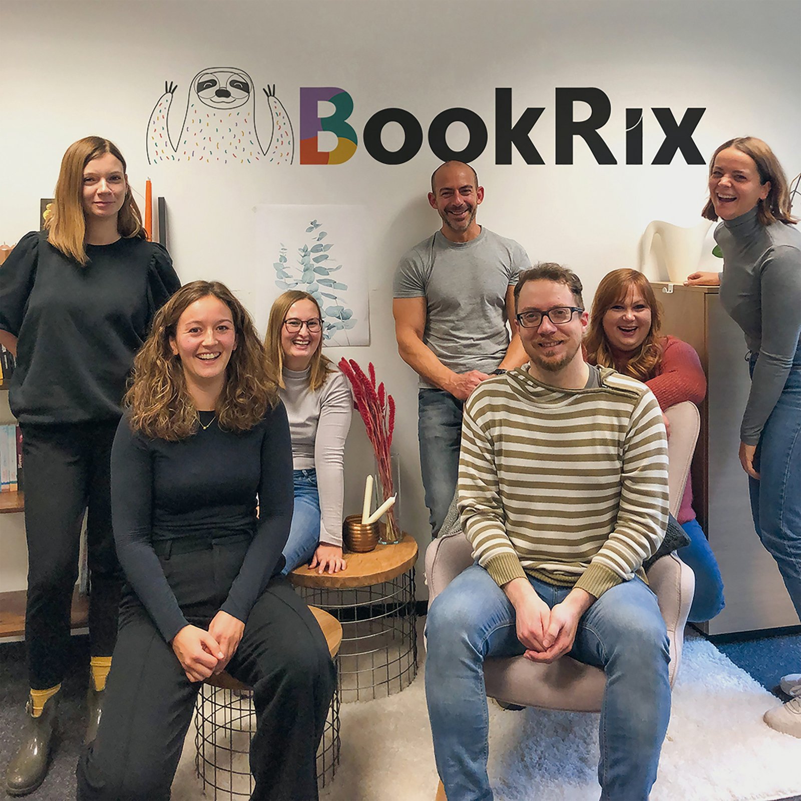 Den Markt fest im Blick: Kerstin Erlich, Julia Schneck, Tabea Brauner, Marc Lubitsch, Johannes Conrady, Sandra Nyklasz und Sarah Kupitza (v.l.) von BookRix unterstützen Selfpublisher beim Vertrieb ihrer digitalen Hörbücher. (Foto: BookRix/Sarah Kupitza)