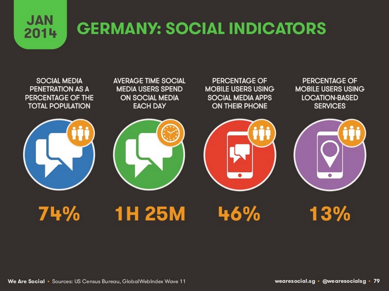 In der Studie „Social, Digital & Mobile in 2014“ hat die Agentur mit Hauptsitz in Singapur Zahlen zur Internet- und Social-Media-Nutzung in 24 ausgewählten Staaten zusammengetragen – darunter Deutschland, USA, Frankreich, Indien und China. Die via „Slideshare“ kostenlos zur Verfügung gestellten Folien zeigen, wie unterschiedlich Internet und soziale Medien in den vorgestellten Ländern genutzt werden. buchreport.de stellt die wichtigsten Ergebnisse für Deutschland vor.
