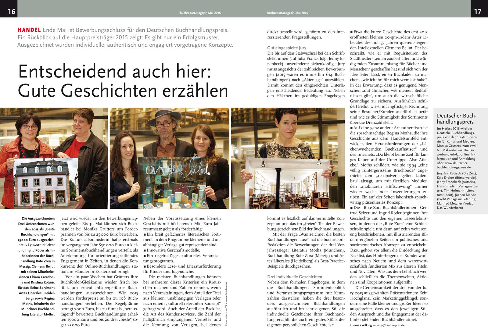 Als Service für alle Händler auf der Suche nach den richtigen Informationen bietet buchreport als Bewerbungshilfe einen Artikel aus der Ausgabe 5/2016 an – denn ein Rückblick auf die ersten Hauptpreisträger des Jahres 2015 zeigt, dass es ein Erfolgsmuster gibt: