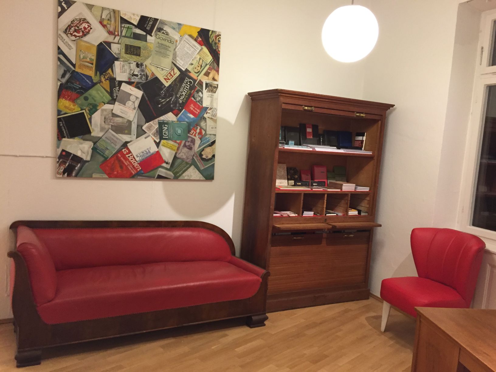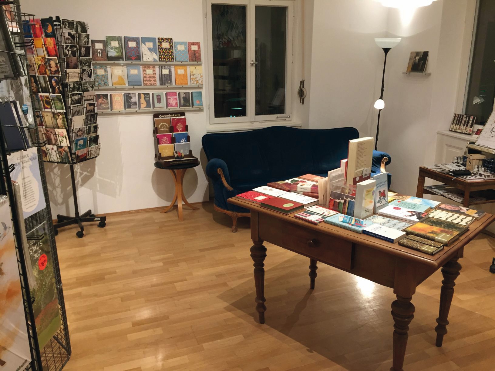 - Wohnzimmer (mit den Sortimentsbereichen Literarisches, Kunstpostkarten, antiquarische Bücher, Kalender)