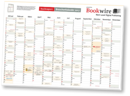 Der buchreport-Branchenkalender stellt die wichtigsten Termine im In- und Ausland gedruckt (das Plakat liegt dem buchreport.magazin 12/2016 bei) und in elektronischem Format zusammen. Der digitale Kalender kann kostenlos herunterladen. Hier finden Sie die Anleitungen.