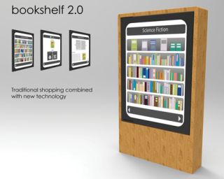 Wie platziere ich E-Books in der physischen Welt? Rücken- oder Frontalpräsentation? Antworten liefert der Ideenwettbewerb „Forum Zukunft Arena Digital 2014“ und prämiert den Entwurf einer Hagener Produktdesignerin, die den E-Book-Kauf im stationären Buchhandel greifbar machen will. Die Grundidee von „Bookshelf 2.0“ (siehe Abbildung), für das Olivia Tomaschek den Jury-Preis erhält: Den traditionellen Einkaufsprozess von physischen Büchern mit einer neuen Technologie zu verbinden und so aufs E-Book-Shopping zu übertragen. Dazu sollen im Buchhandel (oder auch andernorts) digitale Regalwände installiert werden, über die sich Titel anwählen, durchblättern und aufs eigene mobile Endgerät übertragen lassen. Zu dem Konzept gehört die Möglichkeit, ein über das „Bookshelf 2.0“ ausgewähltes E-Book direkt über eine App oder an der Kasse der jeweiligen Buchhandlung kaufen zu können.