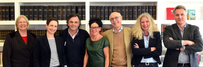 Die Anwärter für den 11. Deutschen Buchpreis, der am 12. Oktober in Frankfurt verliehen wird, stehen fest. Die Jurymitglieder (Foto: Rainer Rüffer; v.l.n.r.: Ulrike Sárkány, Claudia Kramatschek, Markus Hinterhäuser, Ursula Kloke, Rolf Keussen, Bettina Schulte, Christopher Schmidt) haben aus 199 Titeln, die zwischen Oktober 2014 und dem 16. September 2015 erschienen sind oder noch erscheinen, 20 für die diesjährige Longlist ausgewählt.