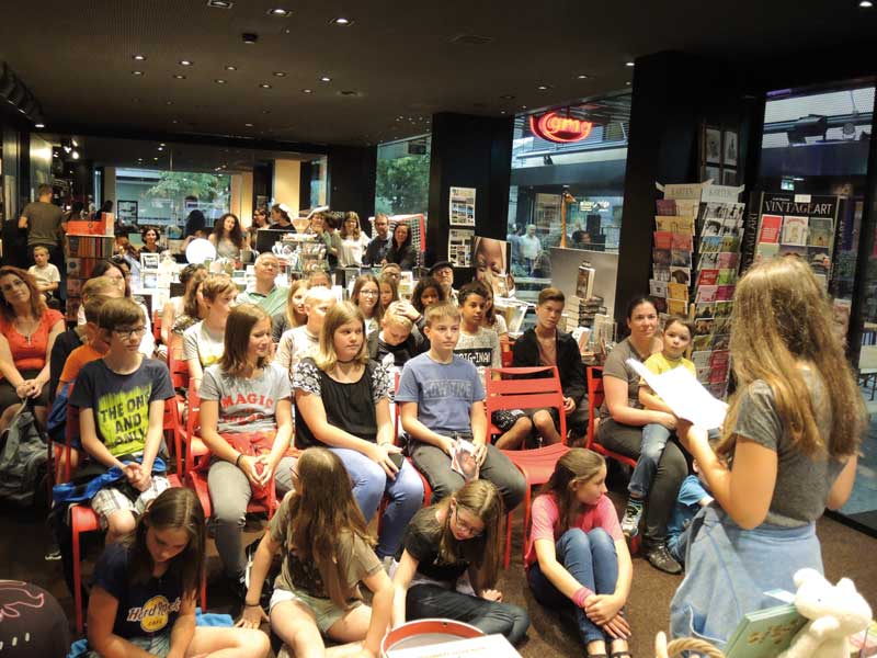 Books in Buchs: Für Buchhändlerin Julia Hauser ist Networking vor Ort besonders wichtig, um im Einzelhandel bestehen zu können. Mit einer Buchvernissage bei Books in Buchs in der Schweiz hat sie einen atmosphärischen Abschluss für ein Hilfsprojekt geboten: Die Sechstklässler der örtlichen Schule präsentierten ein Buch mit selbst verfassten Geschichten, dessen Erlös an eine Schule im Kongo geht. (Foto: Armando Bianco)