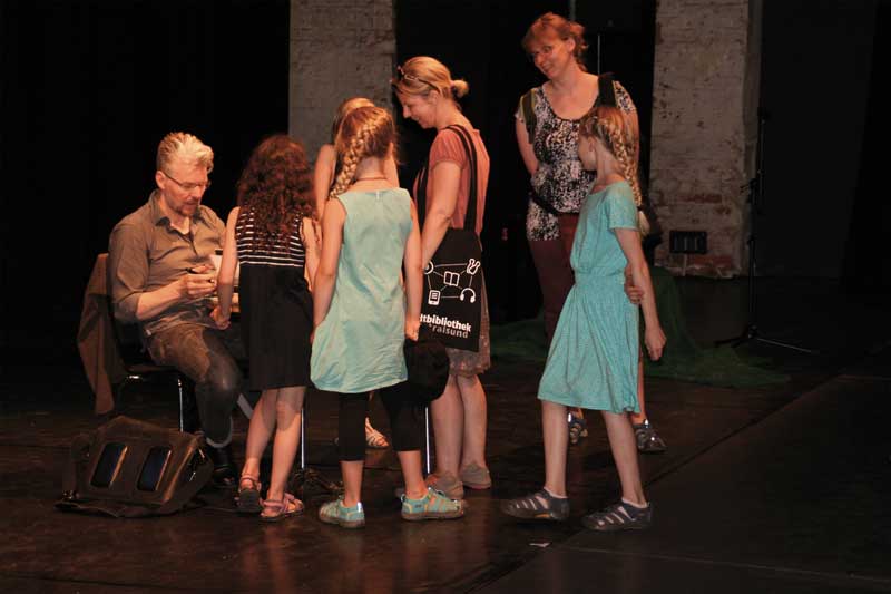 Strandläufer: Vor 4 Jahren haben die Strandläufer-Verleger Peter und Katrin Hoffmann eine eigene 24-qm-Verlagsbuchhandlung in Stralsund eröffnet und sich Leseförderung sowie lokale Vernetzung auf die Fahnen geschrieben. Beim Festival „Buch & Bühne“ stellten die Buchhändler gemeinsam mit Stadtbibliothek und Kindertheater ein buntes Programm rund um die Lesungen von Kinderbuchautor Martin Baltscheit (Foto) auf die Beine. (Foto: Strandläufer)
