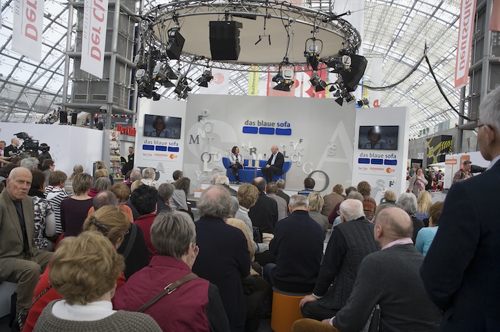 Einer der Leipziger Publikumsmagneten: das blaue Sofa, hier mit der Schriftstellerin Daniela Dahn.