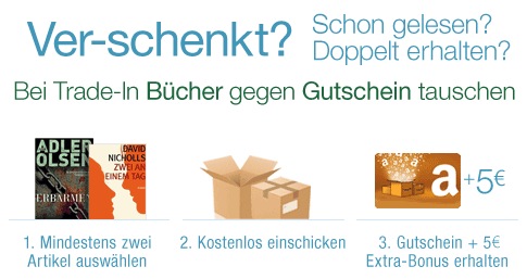 - Amazon: Das Oberlandesgericht Frankfurt hat am 4. September eine Einstweilige Verfügung gegen Amazon erlassen. Im Rahmen seines „Amazon-Trade-In“-Programms (bei dem Kunden gebrauchte Bücher abgekauft werden, hier mehr) hatte der Onliner seinen Kunden einen Gutschein über 5 Euro versprochen, wenn sie gleich zwei Bücher verkauften: