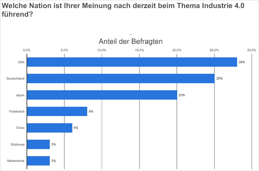 Welche Nation ist Ihrer Meinung nach derzeit beim Thema Industrie 4.0 führend? Bild: Statista