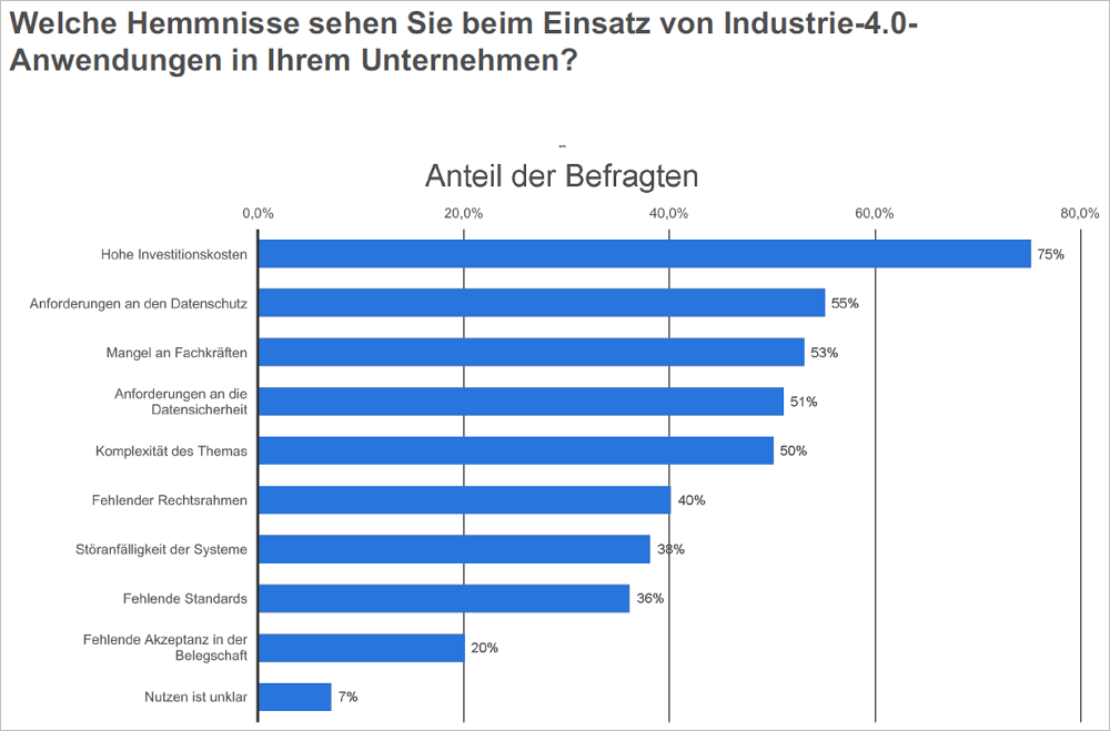Hemmnisse beim Einsatz von Industrie 4.0-Anwendungen in den Unternehmen. Bild: Statista