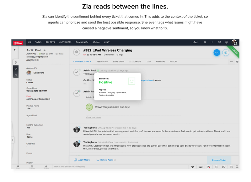 Zoho Desk ist eines der kostenlosen Team-Kommunikationswerkzeuge, das neben der internen Kommunikation auch den Kundenservice in den Mittelpunkt stellt. Die Software enthält ein Service-Aufgaben-System, das visuell nach der Priorität der Aufgaben geordnet ist. Jede dieser Aufgaben kann einer bestimmten Person, einem Team oder mehreren Teams zugewiesen werden, um sie zu betreuen. Somit sieht jeder im Team, wer gerade woran arbeitet.