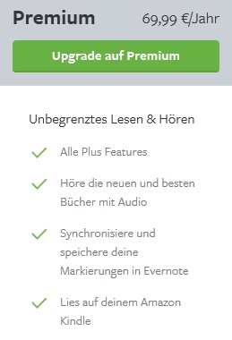 Die Zusatzfunktion ist im Premium-Abo enthalten, das jährlich 69,99 Euro kostet. Zum Vergleich: Fürs unbegrenzte Lesen der „Blinks“ verlangt Blinkist 44,99 Euro.