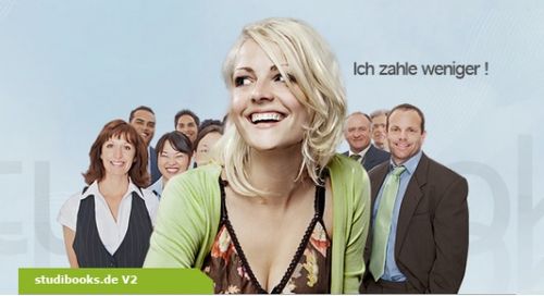 Zum einen haben die Frankfurter eine Einstweilige Verfügung gegen die Versandbuchhandlung Studibooks.de erwirkt (das Foto zeigt eine Werbung auf der Homepage des Händlers). Das Landgericht Hamburg hat dem Unternehmen untersagt, verlagsneue Bücher an Endkunden zu anderen als den von den Verlagen festgesetzten Preisen zu verkaufen – laut Sprang wurden Fachbücher im Schnitt 10% unterhalb des gebundenen Ladenpreises angeboten.