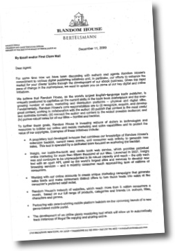 Laut New York Times hat Random House-Chef Markus Dohle (Fotomontage: buchreport.de) am vergangenen Freitag einen Brief (hier zum Download) an Dutzende Agenturen geschickt: Die älteren Verträge gäben der Verlagsgruppe das „exklusive Recht, die entsprechenden Titel als E-Books zu veröffentlichen“ – eine Kampfansage an die Rechteinhaber, die unzufrieden sind mit den Tantiemen, die die Verlage bei der E-Verwertung ausschütten (durchschnittlich 25%), und eigene digitale Wege gehen wollen.