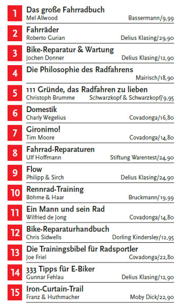 Das Fahrrad erlebt als Kultobjekt und Sportgerät eine Renaissance. Leser sind an unterschiedlichen Titeln von Reparaturanleitungen bis Biografien interessiert, wie die Themenbestsellerliste zeigt.