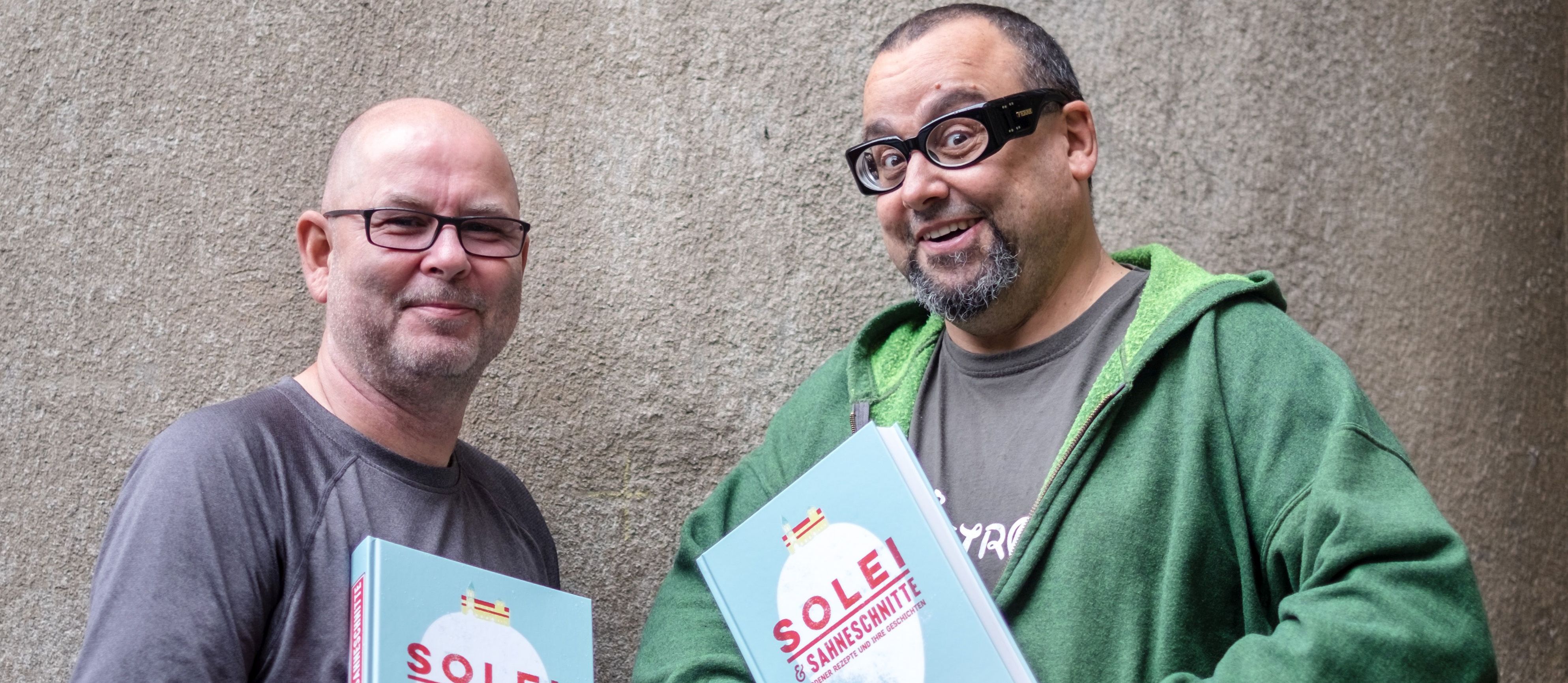 Der Essener Buchhändler Thomas Schmitz (l.) ist bei der Werbung für seine Geschäfte besonders aktiv. Bei den Projekten wird er von dem Designer Dirk Uhlenbrock unterstützt. Sein Credo: Investition in gezielte PR ist ein Muss, begeisterte Kunden sind die besten Botschafter.