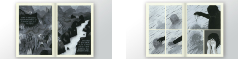 „Staunend“ blättert die Jury durch die Seiten: „Es ist eine neue, eigene Erzählung des Autors und Zeichners zum Ursprungsmythos der Christophorus- Legende – ikonografisch angereichert, verwoben, rätselhaft, ja geradezu bildmagisch inszeniert. Überraschend, wie jahrhundertealter Erzählstoff, in der heutigen säkularen Welt als Märchen und Schummel in Vergessenheit geratend, zu dieser poetischen, modernen und künstlerischen Form umgearbeitet wurde.“