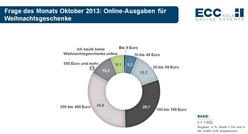Lesebeispiel: 10,5% der befragten Online-Shopper werden dieses Jahr voraussichtlich 500 Euro und mehr für Weihnachtsgeschenke online ausgeben. © ECC Köln