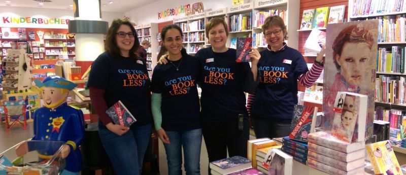 Oetinger hat gemeinsam mit dem Regionalfilialisten Osiander eine Marketingaktion zum Taschenbuch-Spitzentitel „Bookless. Wörter durchfluten die Zeit“ von Marah Woolf durchgeführt: In 17 Filialen trugen alle Buchhändler für einen Tag T-Shirts mit dem Aufdruck „Are you bookless?“ (v.) / „Ask me!“ (h.). „Wir wurden von vielen Kunden auf die T-Shirts und das Buch angesprochen“, resümiert Andrea Knopf aus Konstanzer Filiale in der Kanzleistraße. Sie hat auch einen verkaufsfördernden Effekt beobachtet.