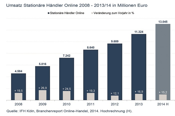 - Im Jahr 2014, so das IFH, würden über diesen Vertriebsweg rund 13 Mrd Euro umgesetzt (+15%).