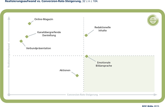 Als erlebnisorientierte Funktionalitäten gelten u.a. Themenwelten, Newsletter-Versand, Online-Kataloge, Online-Prospekte, Verbundpräsentationen von Produkten, etwa wenn in einem Online-Shop im Möbelbereich ganze Räume online abgebildet werden.