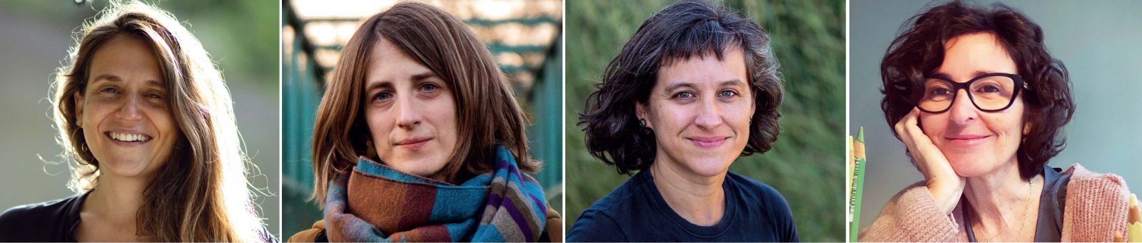 Vertreterinnen einer kreativen Szene: Die Illustratorinnen/Autorinnen Aina Bestard, Maite Mutuberria, Agnes Rotger und Rocio Bonilla (v.l.) werden während der Buchmesse ihre aktuellen Titel vorstellen. Agnes Rotger und ihre Co-Autorin Nadia Ghulam sind mit ihrem Roman „Das Geheimnis meines Turbans“ (cbt, 2021) über eine Flucht vor den Taliban für den diesjährigen Deutschen Jugendliteraturpreis nominiert. (Fotos: Noemi Elias, Maite Mutuberria/privat, Asis Ayerbe, Rocio Bonilla/privat)