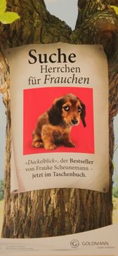 Die Qualität ist deutlich besser geworden – das fällt besonders im Bereich Jugendbuch auf. Die Zielgruppe der Jugendlichen ist mit Bestsellererfolgen wie „Harry Potter“, „Panem“ und Kerstin Gier immer wichtiger geworden. Die Jugendbuch-Cover werden schöner und aufwendiger gestaltet, und mit ihnen auch die Plakate, die sich meist stark an den Covern orientieren. Aber nicht alle Plakate werden nach „Schema F“ gestaltet, ein schönes Beispiel ist das Plakat für das Buch „Dackelblick“ (re.).