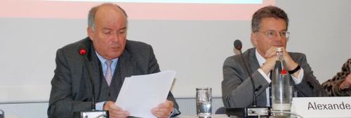 Börsenvereins-Vorsteher Gottfried Honnefelder mit Hauptgeschäftsführer Alexander Skipis (r.)
