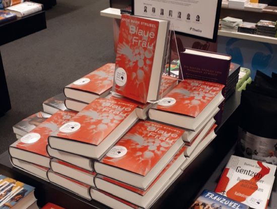 Schnelle Nachdrucke sind noch machbar: Als Antje Rávik Strubel im Oktober für „Blaue Frau“ den Deutschen Buchpreis gewinnt, lässt ihr Verlag S. Fischer den Titel, der sich bis dahin nur mäßig verkauft, sechsstellig nachdrucken. CPI Books in Leck wirft direkt nach der Preisverleihung die Druckmaschinen an und produziert die Nachauflage von 100.000 Exemplaren innerhalb weniger Tage. Der Drucker konnte die Kapazitäten in der Woche der Preisverleihung relativ risikolos reservieren: Er produziert 4 der 6 Shortlist-Titel 2021. (Foto: buchreport/DZ)