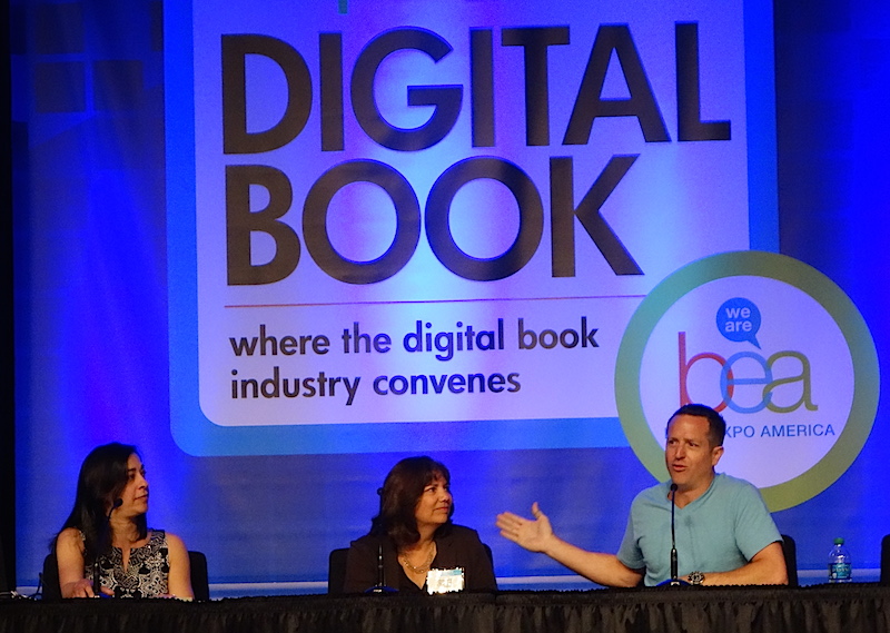 Selfpublishing-Hochkaräter auf dem Podium (v.l.): Bella Andre, Barbara Freethy und Hugh Howey.Ist die Indie-Revolution zu Ende? Dies war die zentrale Frage, der sich drei Autoren bei der IDPF-Konferenz „Digital Book 2014“ zur BookExpo New York gewidmet haben. Ihr Fazit: Die Selfpublishing-Revolution habe nicht einmal so richtig begonnen.