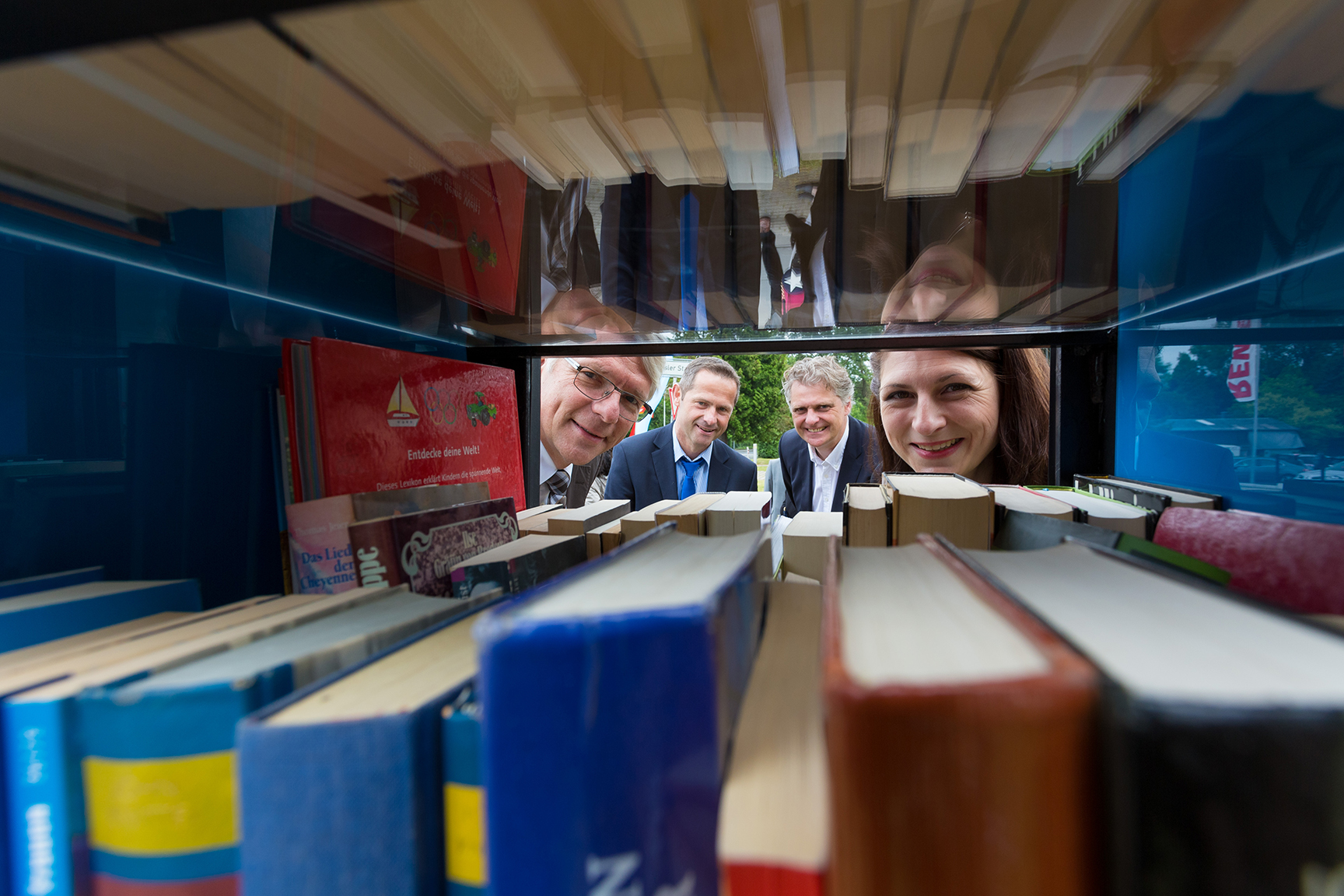 Seit 2011 stellt RWE Deutschland offene Bücherschränke an zentralen Plätzen in Städten und Gemeinden auf. Jetzt wird Jubiläum gefeiert: Der 99. und 100. Bücherschrank stehen seit letztem Samstag im niederrheinischen Schwalmtal. Gemeinsam eröffneten Ortsbürgermeister Michael Pesch und Dr. Heinz-Willi Mölders, Personalvorstand von RWE Deutschland, die beiden Bücherschränke.