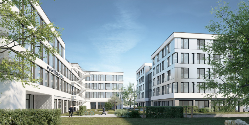 Weltbild erhält eine neue Zentrale: Das Handelsunternehmen zieht Ende 2021 in den neu geschaffenen Bürokomplex „Augsburg Offices“ um.