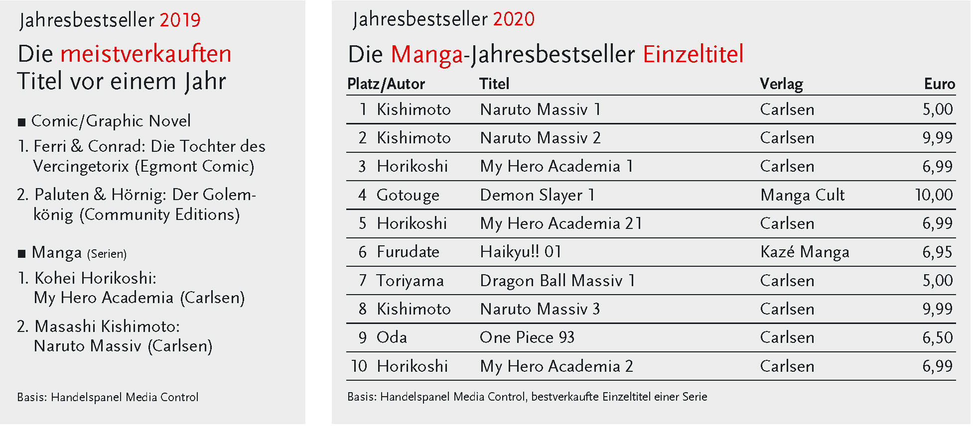 Die Bestseller in der Warengruppe Comic werden vielfältiger. Bei Manga dominiert weiterhin Carlsen.